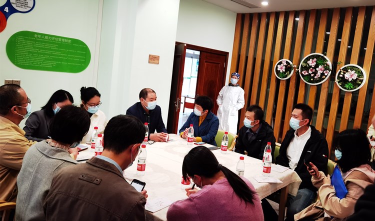 江汉区社会福利院事业发展中心副主任、江汉区社会福利院周春芳院长就福利院膳食营养、配餐管理、疫情处置等情况进行了介绍和说明。唐处长就此次调研的目的进行了说明,他表示希望通过此次调研进一步做好营养健康宣传,掌握老年人膳食情况,并以此为依据,制定老年人合理膳食营养计划和标准,为创建营养健康食堂做准备。赵所长从养老机构供餐情况、人员培训教育、老年人膳食健康调查、老年人失能情况调查等方面对此次调研情况进行了详细说明。