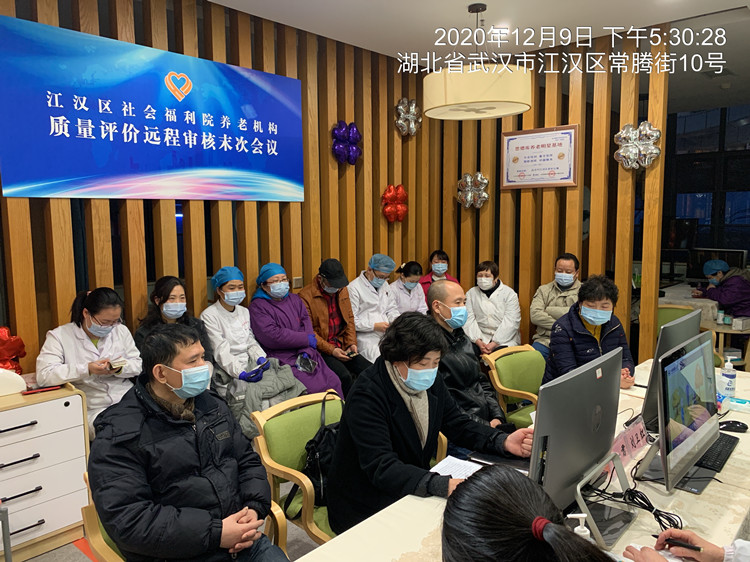 12月7日,远程审核首次会议在江汉区社会福利院召开。会议由中国质量认证中心审核组组长吕鉴权主持并就此次复审情况进行了说明,江汉区民政局副局长刘卫红、江汉区社会福利事业发展中心党组书记、主任王一君、江汉区民政局副局长张宏、中国质量认证中心武汉分中心部长王祥、江汉区社会福利事业发展中心副主任兼福利院书记熊承刚、副主任兼福利院院长周春芳等出席。周院长就一年来福利院养老服务情况进行了介绍,刘卫红副局长和王祥部长分别讲话。